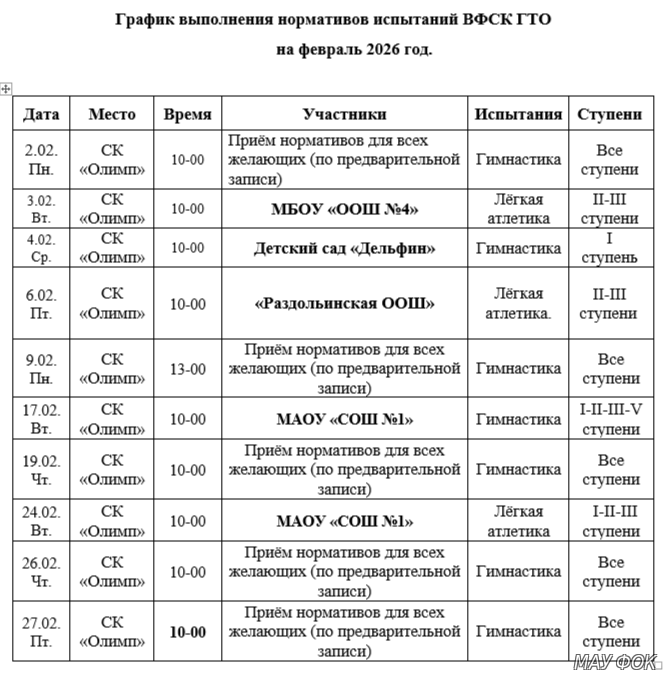 График приема нормативов на знак отличия ГТО на февраль 2026 года. Сдать нормы ГТО может любой желающий, в возрасте от 6-ти до 80-ти лет, кто дружит со спортом — занимается в секциях или самостоятельно. Для каждой возрастной ступени предусмотрены определенные требования. Организовать и провести для обратившихся сдачу нормативов Всероссийского физкультурно-спортивного комплекса «Готов к труду и обороне» помогут специалисты центра тестирования при МАУ «ФОК» по адресу: г. Топки, мкр. Солнечный, 5А Телефон для справок: 8(38454) 3-65-40 #ТерриторияспортаТопки