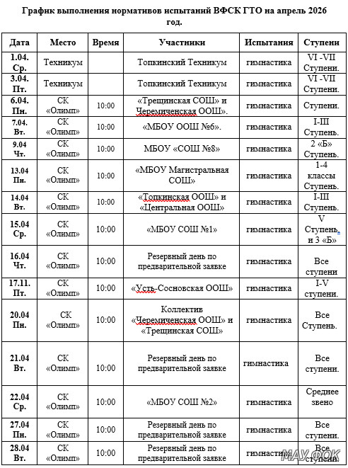 График приема нормативов ГТО
